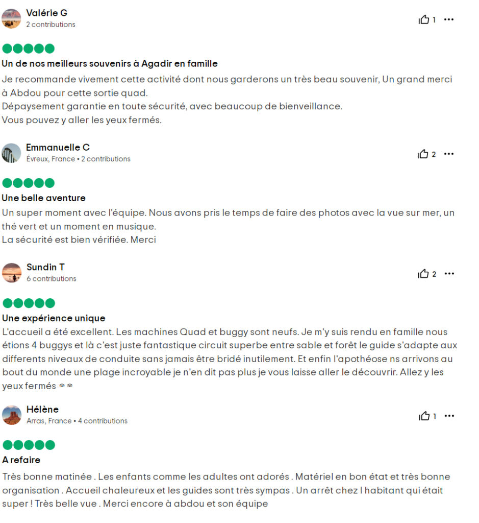 Chez Elik Adventure, nous sommes bien plus qu’une simple entreprise d’excursions. Basés à Agadir, notre équipe est passionnée par la création de souvenirs inoubliables, remplies d’aventure et d’adrénaline. Forts d’une expérience de plus de 15 ans dans le secteur touristique, nous nous engageons à vous offrir des expériences personnalisées et dynamiques qui vous laisseront des souvenirs impérissables.